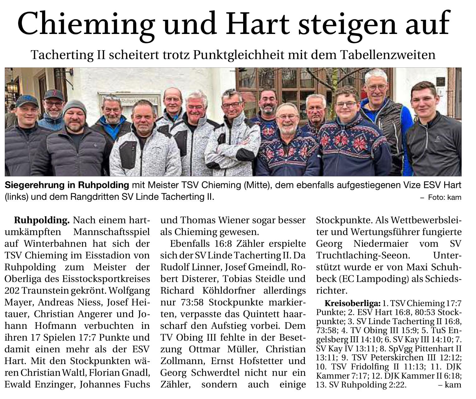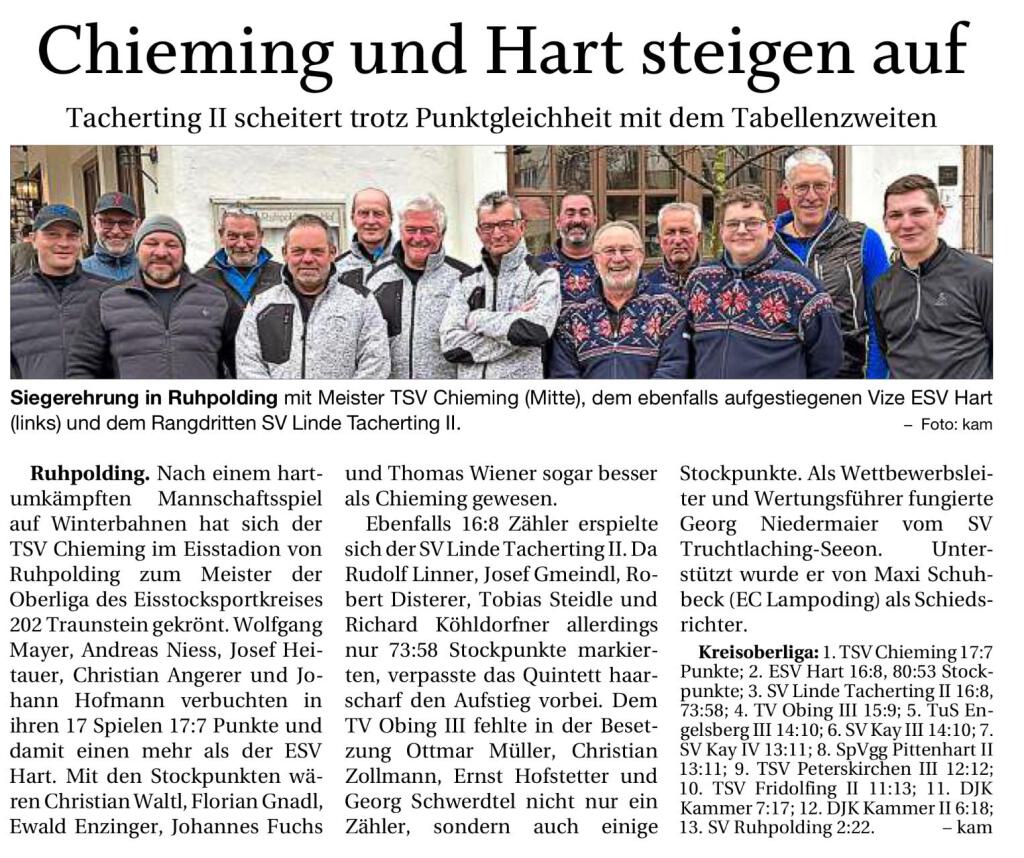 3. SV Linde Tacherting 2 – 16:8 Punkte