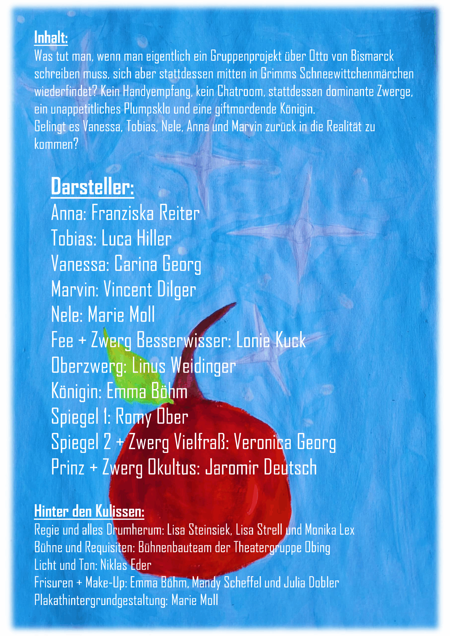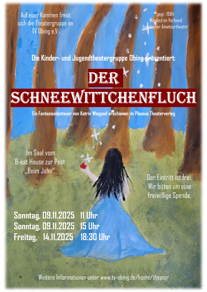 In diesem Jahr bringen die Kinder- und Jugendlichen das Stück „Der Schneewittchenfluch“ von Katrin Wiegand, erschienen im Plausus Theaterverlag, auf die Bühne – eine moderne, humorvolle und zugleich spannende Abenteuergeschichte. Mit viel Begeisterung und Engagement studiert die junge Truppe derzeit ihr neues Theaterstück ein. Neben dem Textlernen und dem Entwickeln der Rollen stehen auch Bewegung, Ausdruck und Bühnenpräsenz auf dem Programm.