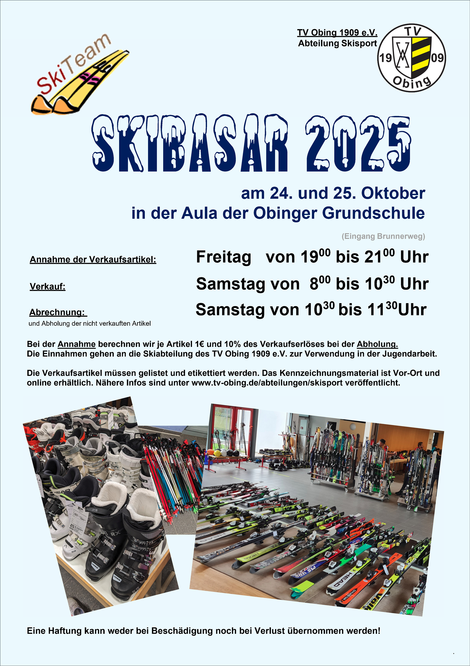 Skibasar 2025 am 24. und 25. Oktober in der Aula der Obinger Grundschule Wie jedes Jahr veranstaltet die Abteilung