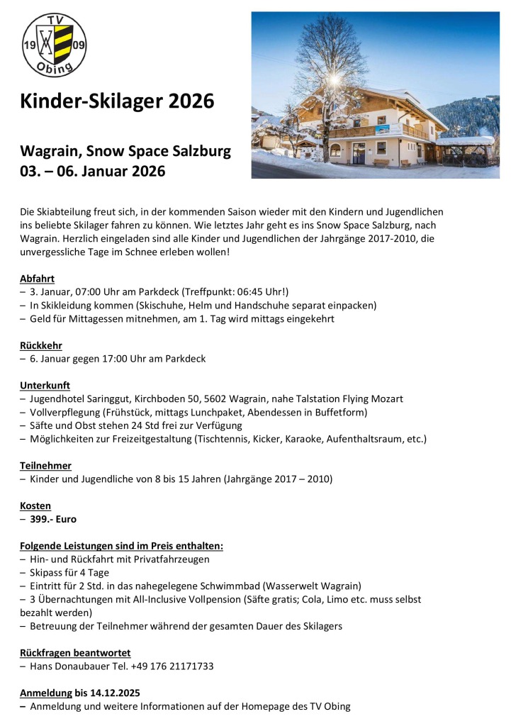 Unsere Tochter / unser Sohn darf vom 3. bis 6. Januar 2026 am Skilager in Wagrain teilnehmen.