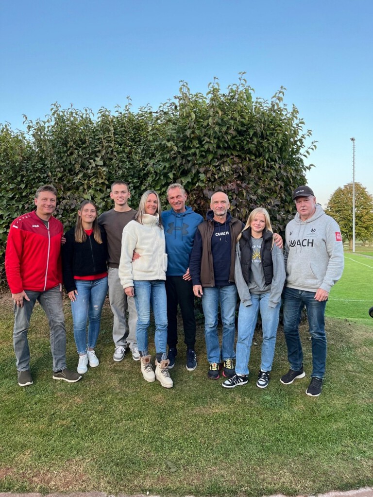 Von links nach rechts: Vorstand Peter Baumann, Anna Lena und Tim Baumann, Gitti Asenkerschbaumer und Reinhard Jais, Albert und Amelie Blank und Sportwart Alexander Keck